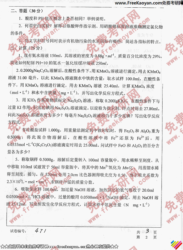 相关话题/考研真题 华中科技大学 分析化学 水质