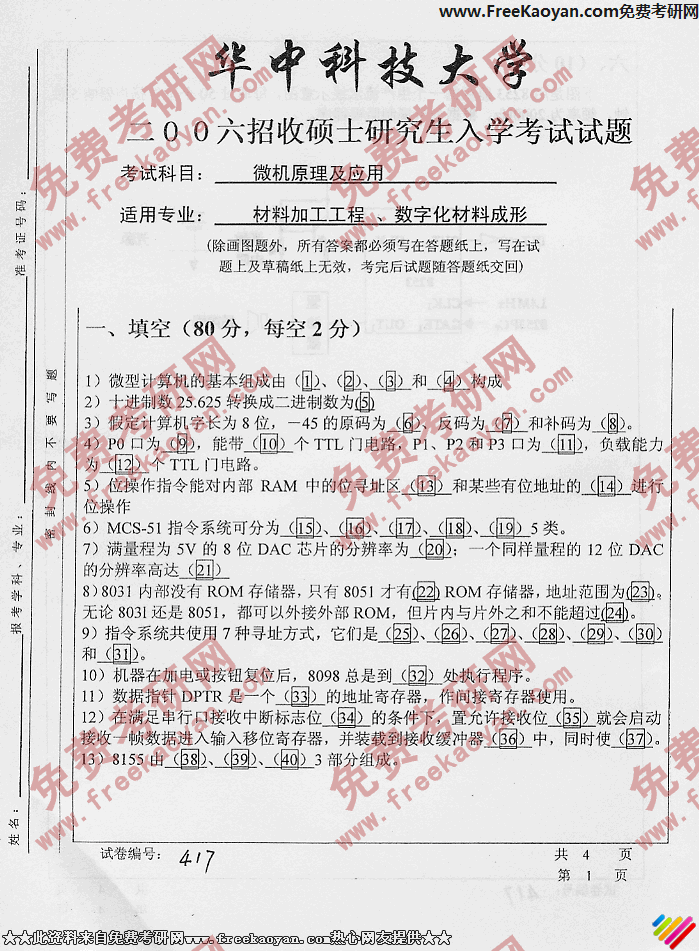华中科技大学2006年考研真题-微机原理及应用