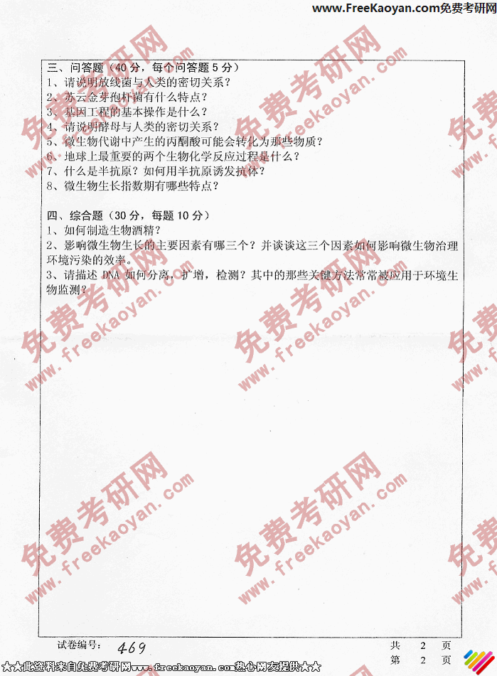 专业课考研经验 本站小编 FreeKaoyan 2018-01-22华中科技大学2006年考研真题-微生物学