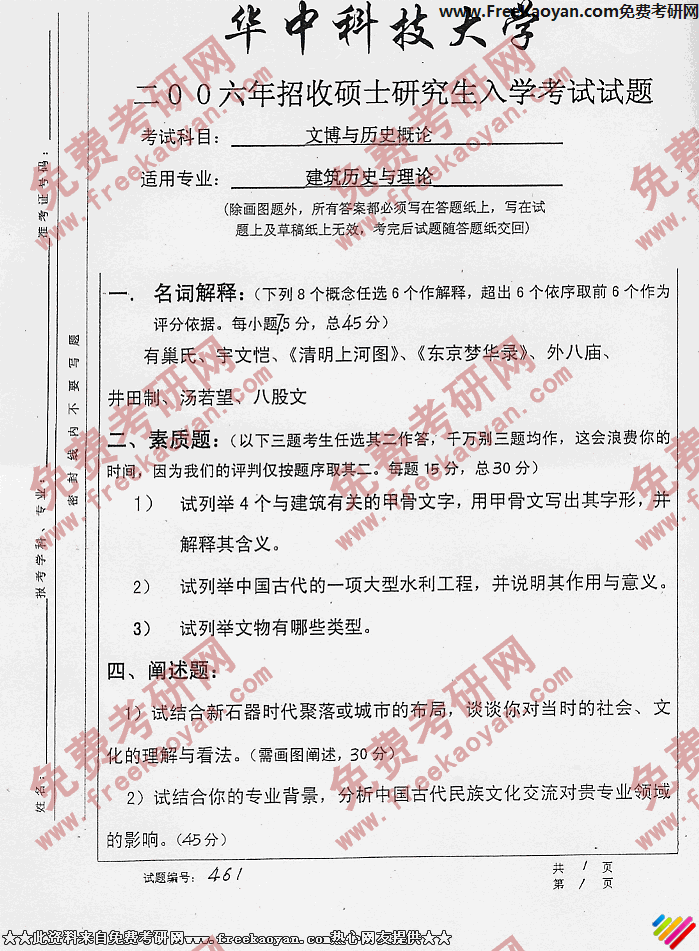 华中科技大学2006年考研真题-文博与历史概论