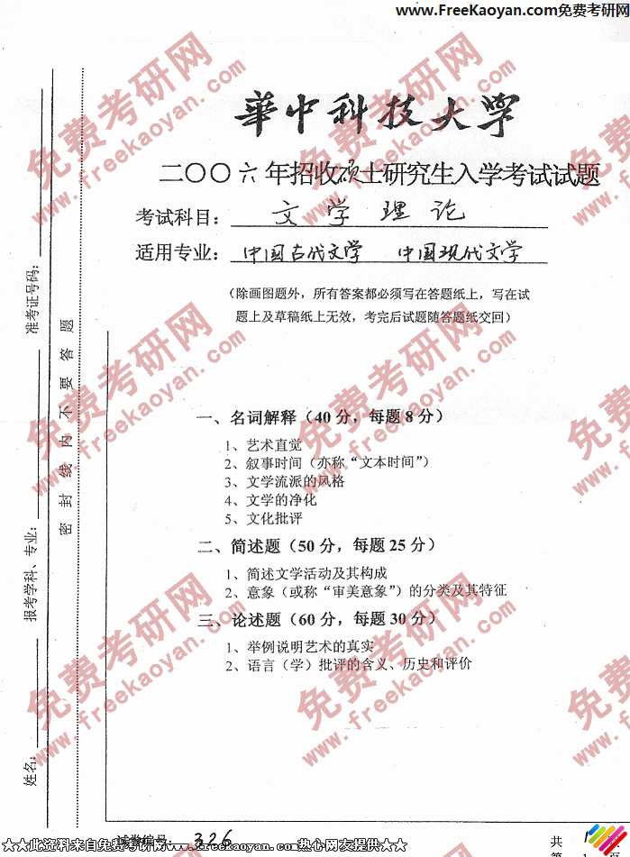 相关话题/华中科技大学 考研真题 文学理论