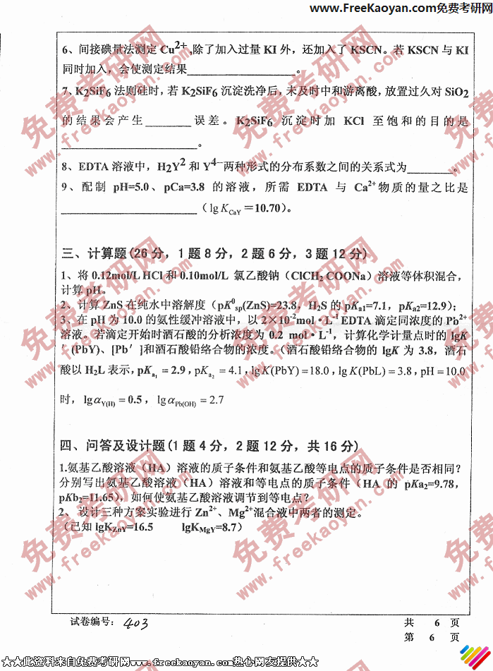 华中科技大学2006年考研真题-无机及分析化学(6)