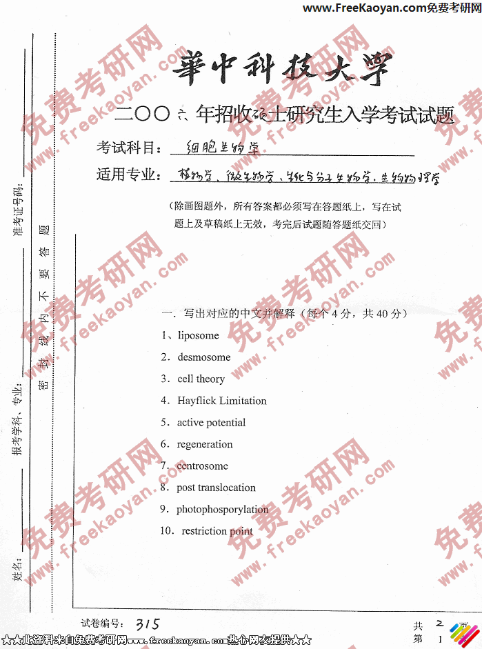 专业课考研经验 本站小编 FreeKaoyan 2018-01-22华中科技大学2006年考研真题-微生物学469