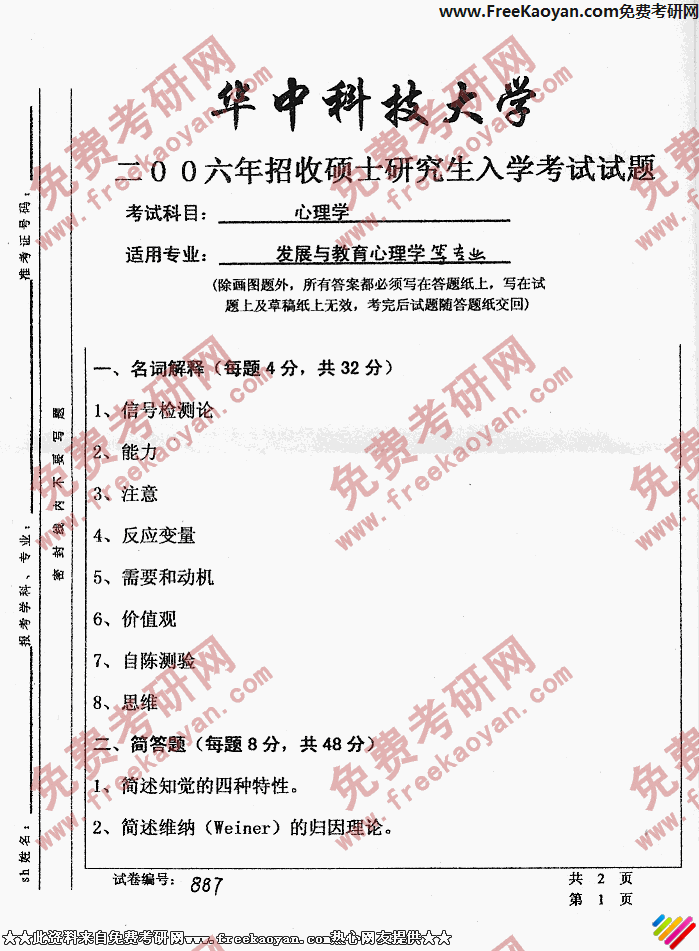 相关话题/华中科技大学 考研真题 心理学