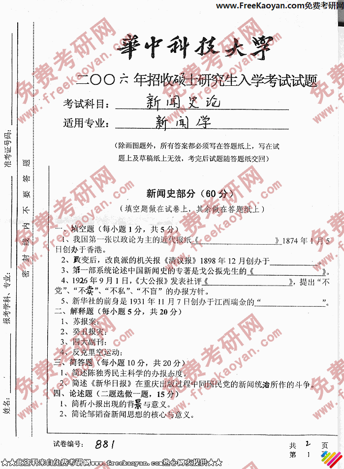 专业课考研经验 本站小编 FreeKaoyan 2018-01-22华中科技大学2006年考研真题-现代教育技术