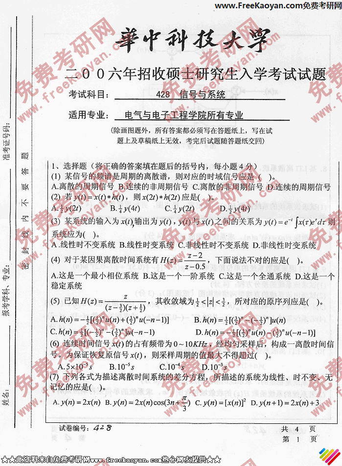 专业课考研经验 本站小编 FreeKaoyan 2018-01-22华中科技大学2006年考研真题-现代教育技术
