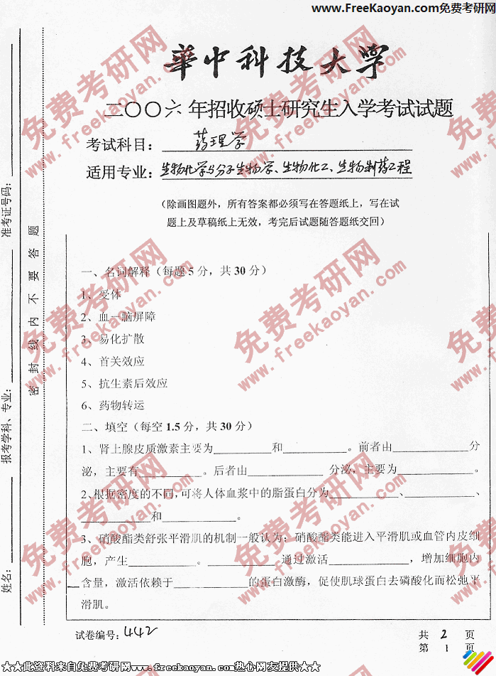 专业课考研经验 本站小编 FreeKaoyan 2018-01-22华中科技大学2006年考研真题-药剂学
