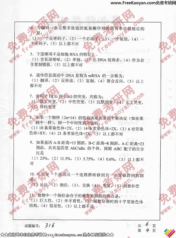 专业课考研经验 本站小编 FreeKaoyan 2018-01-22华中科技大学2006年考研真题-细胞生物学