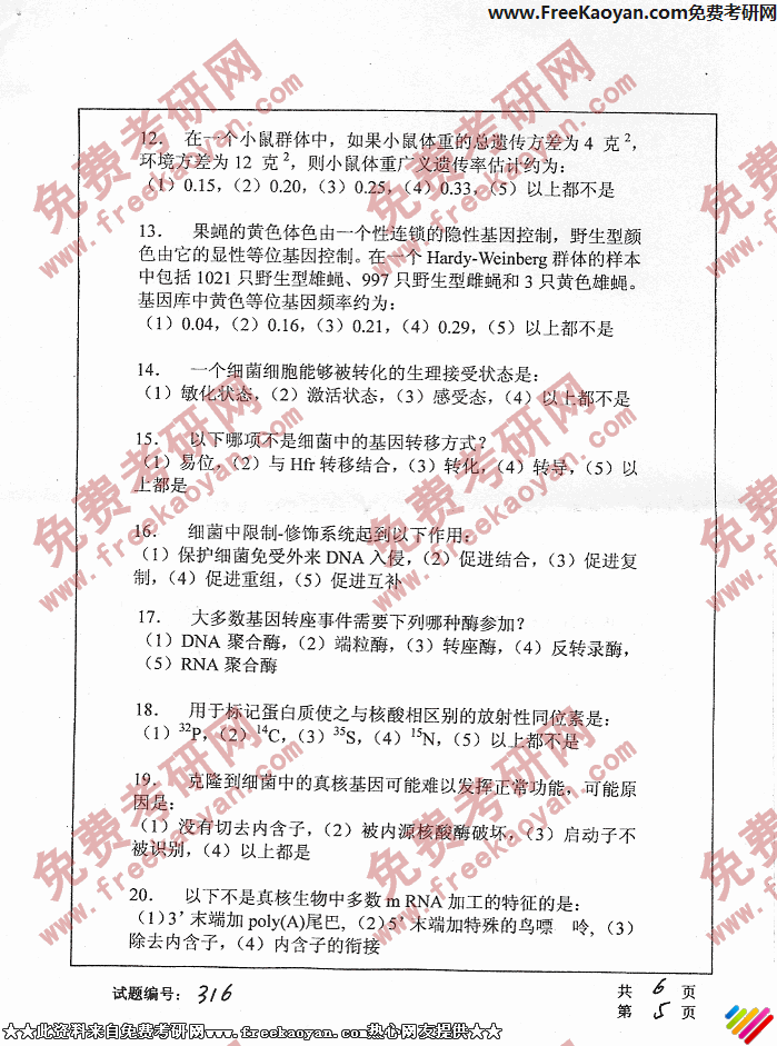 华中科技大学2006年考研真题-遗传学(5)