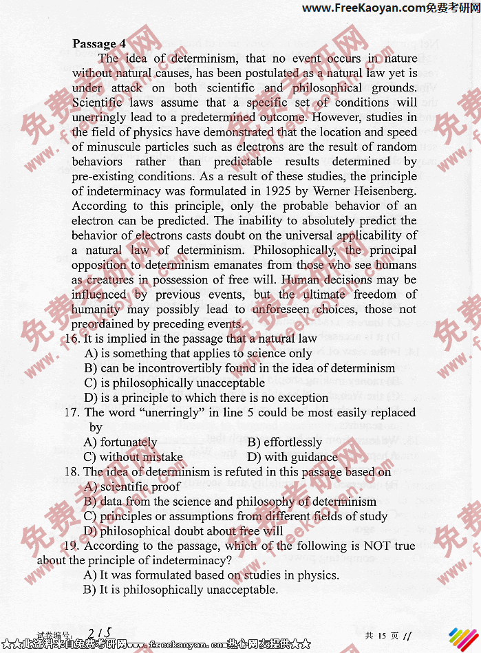 专业课考研经验 本站小编 FreeKaoyan 2018-01-22华中科技大学2006年考研真题-英语(单考)