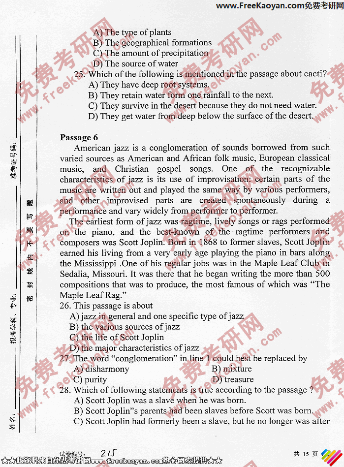 专业课考研经验 本站小编 FreeKaoyan 2018-01-22华中科技大学2006年考研真题-英语(单考)