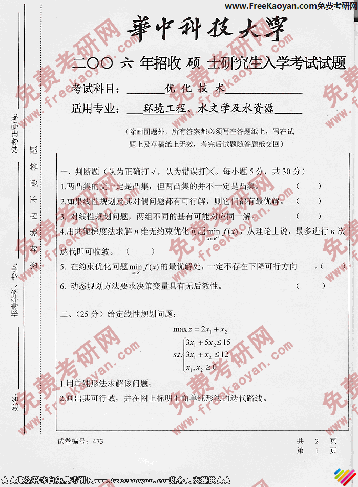 专业课考研经验 本站小编 FreeKaoyan 2018-01-22华中科技大学2006年考研真题-遥感技术基础