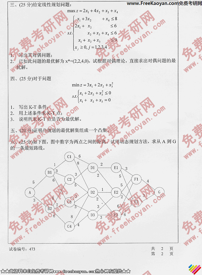 华中科技大学2006年考研真题-优化技术(2)