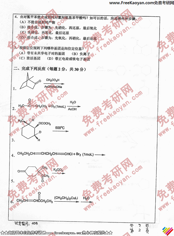 相关话题/华中科技大学 考研真题 有机化学