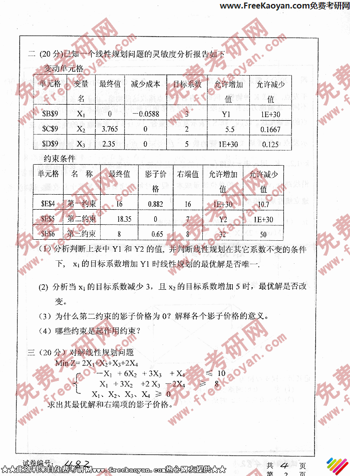 专业课考研经验 本站小编 FreeKaoyan 2018-01-22华中科技大学2006年考研真题-运筹学