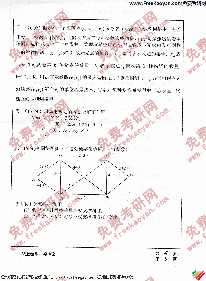 专业课考研经验 本站小编 FreeKaoyan 2018-01-22华中科技大学2006年考研真题-运筹学