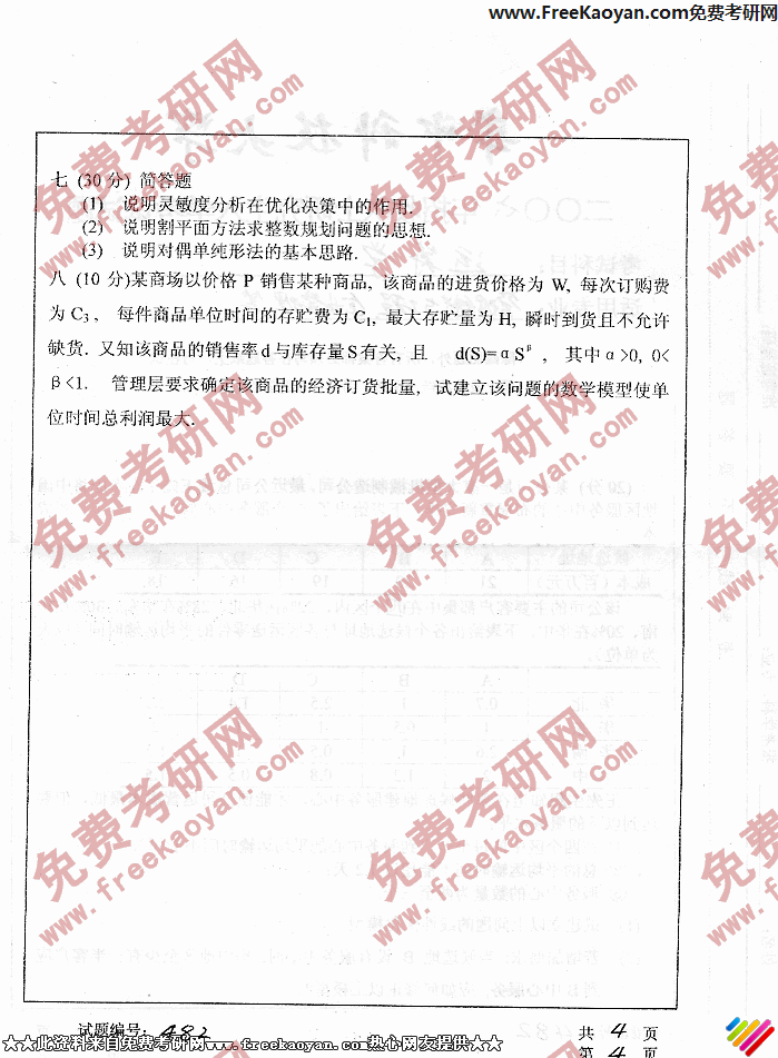 专业课考研经验 本站小编 FreeKaoyan 2018-01-22华中科技大学2006年考研真题-运筹学