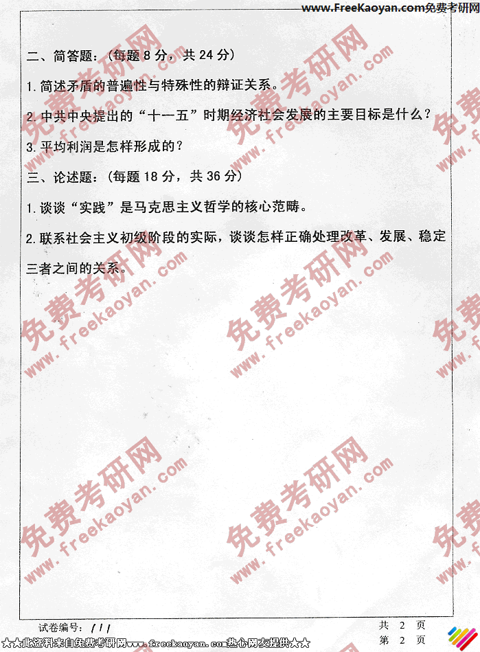 华中科技大学2006年考研真题-政治(单考)(2)
