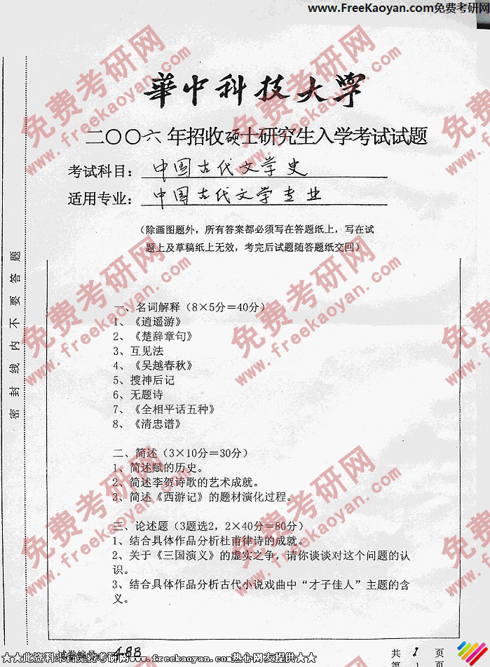 相关话题/华中科技大学 考研真题 中国古代文学史