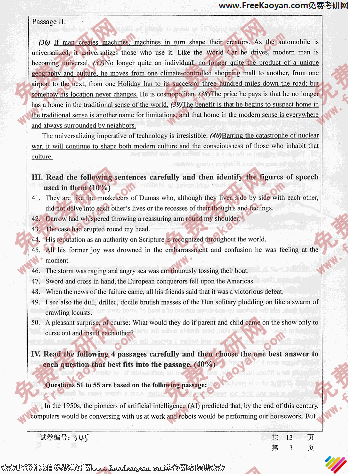 华中科技大学2006年考研真题-综合英语(3)