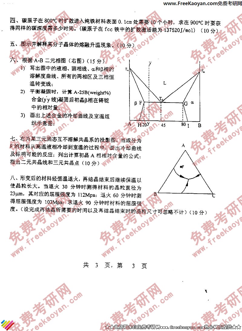 上海交通大学2003年考研真题-材料科学基础(3)