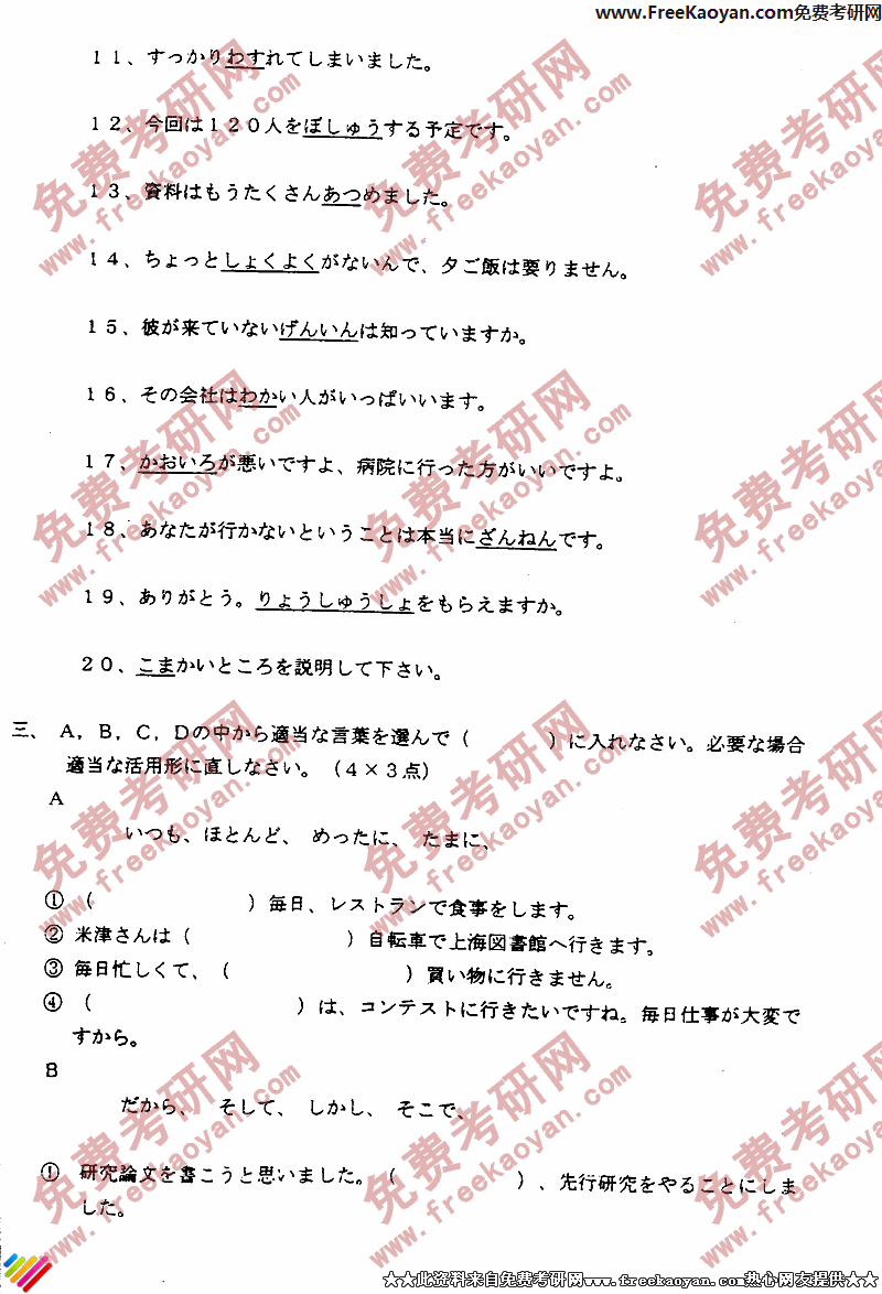 专业课考研经验 本站小编 FreeKaoyan 2018-01-22华中科技大学2006年考研真题-综合日语