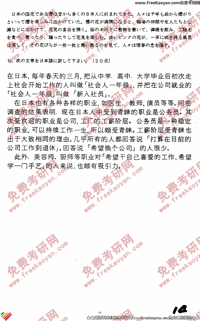 专业课考研经验 本站小编 FreeKaoyan 2018-01-22华中科技大学2006年考研真题-综合日语