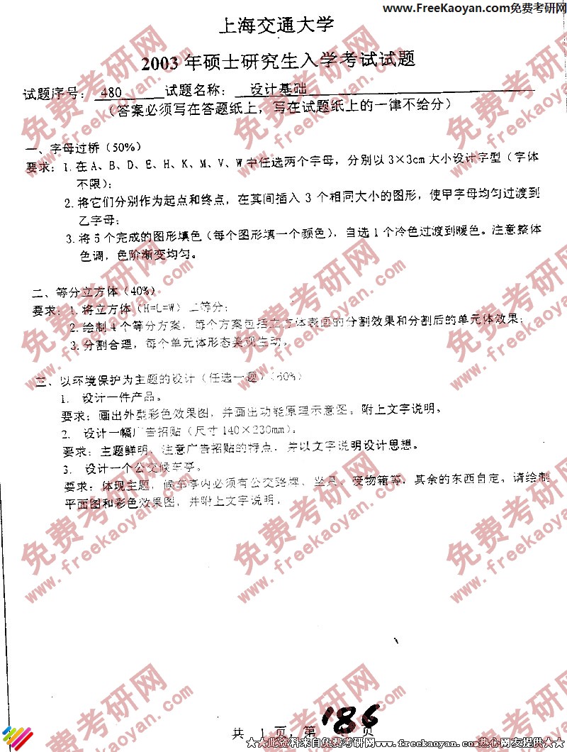 专业课考研经验 本站小编 FreeKaoyan 2018-01-22上海交通大学2003年考研真题-材料科学基础