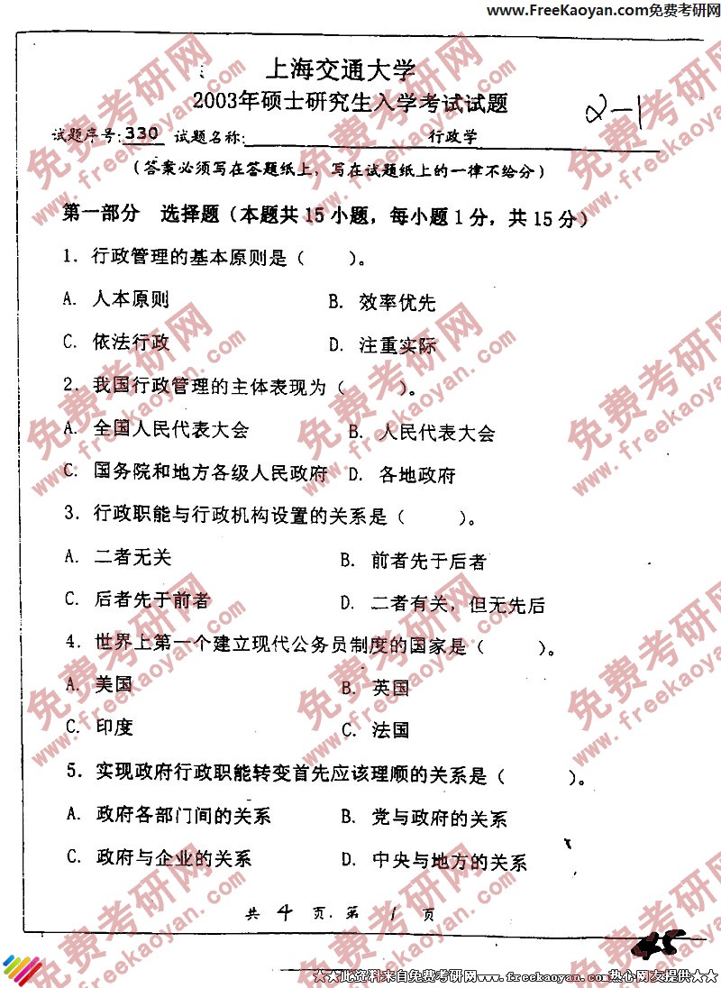 专业课考研经验 本站小编 FreeKaoyan 2018-01-22上海交通大学2003年考研真题-日语二外