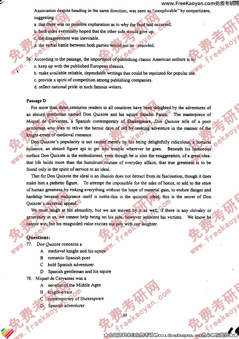 专业课考研经验 本站小编 FreeKaoyan 2018-01-22上海交通大学2003年考研真题-英美文学