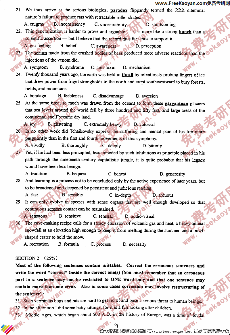 专业课考研经验 本站小编 FreeKaoyan 2018-01-22华中科技大学2006年考研真题-综合英语
