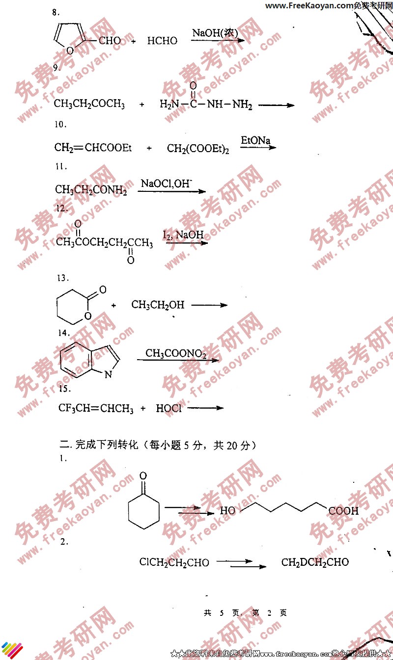 上海交通大学2003年考研真题-有机化学(1)(2)