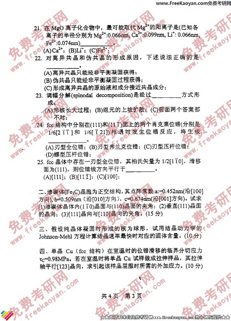 专业课考研经验 本站小编 FreeKaoyan 2018-01-22上海交通大学2003年考研真题-材料科学基础