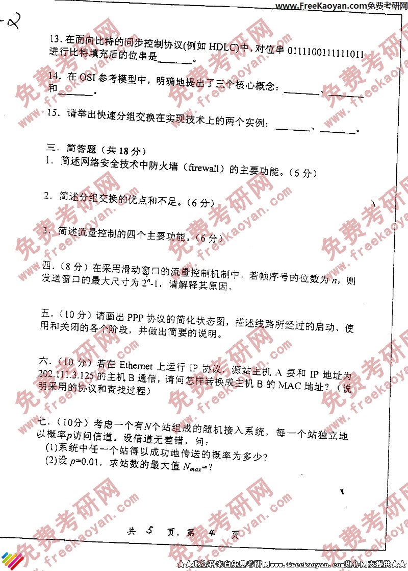 上海交通大学2004年考研真题-计算机通信网(4)