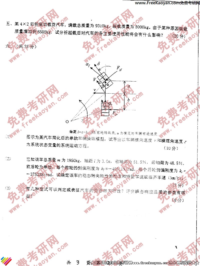 专业课考研经验 本站小编 FreeKaoyan 2018-01-22上海交通大学2003年考研真题-汽车理论