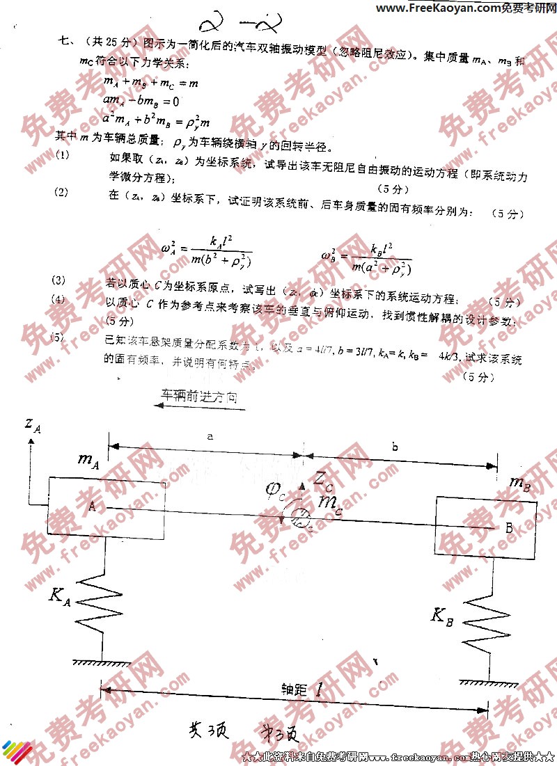 专业课考研经验 本站小编 FreeKaoyan 2018-01-22上海交通大学2003年考研真题-机械振动学
