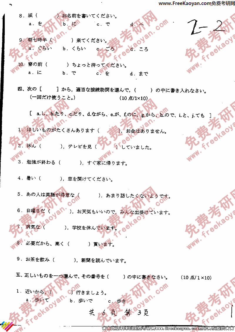 专业课考研经验 本站小编 FreeKaoyan 2018-01-22上海交通大学2003年考研真题-日语二外