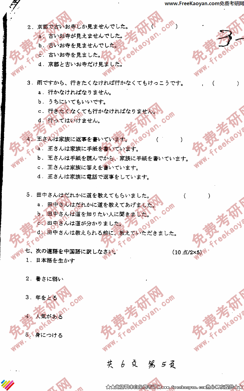 专业课考研经验 本站小编 FreeKaoyan 2018-01-22上海交通大学2003年考研真题-日语二外