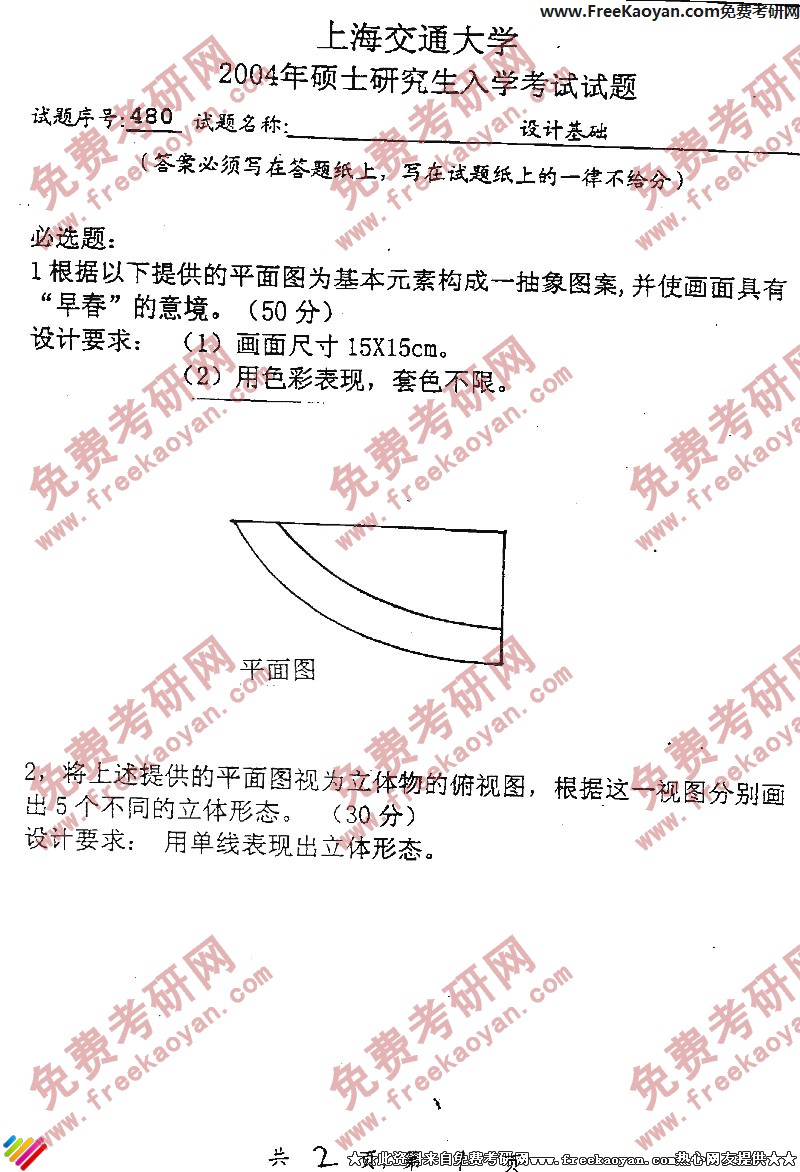 专业课考研经验 本站小编 FreeKaoyan 2018-01-22上海交通大学2003年考研真题-设计基础