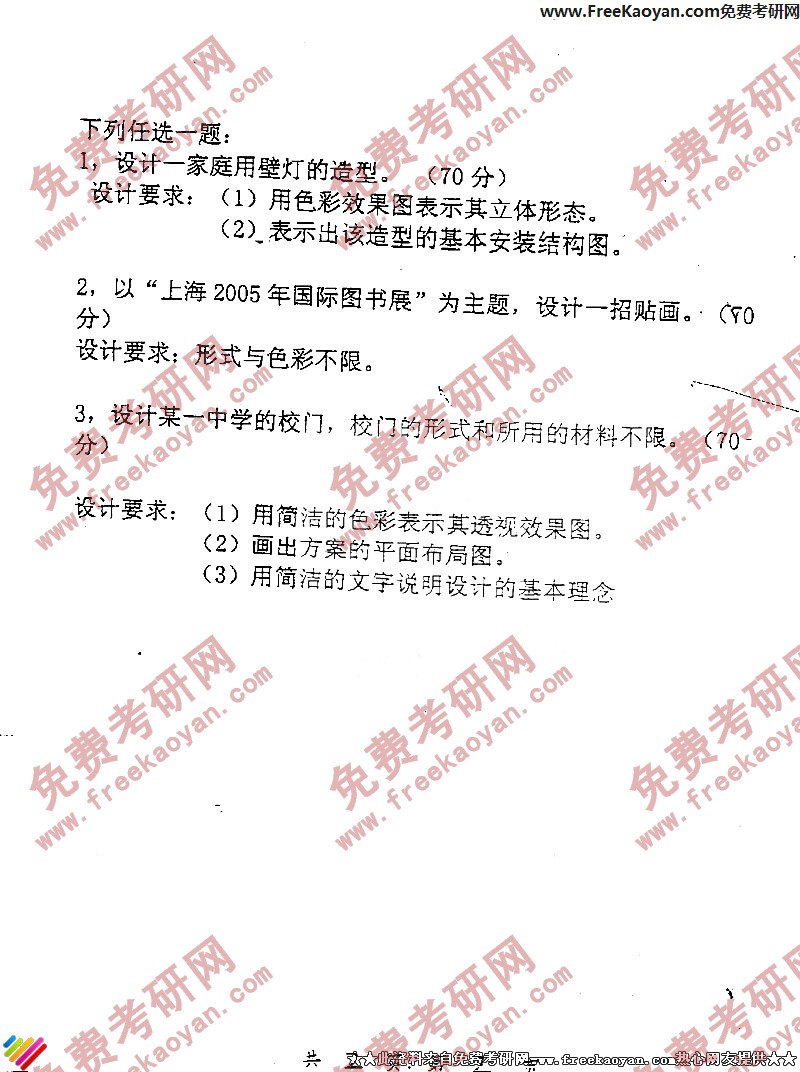 专业课考研经验 本站小编 FreeKaoyan 2018-01-22上海交通大学2003年考研真题-设计基础