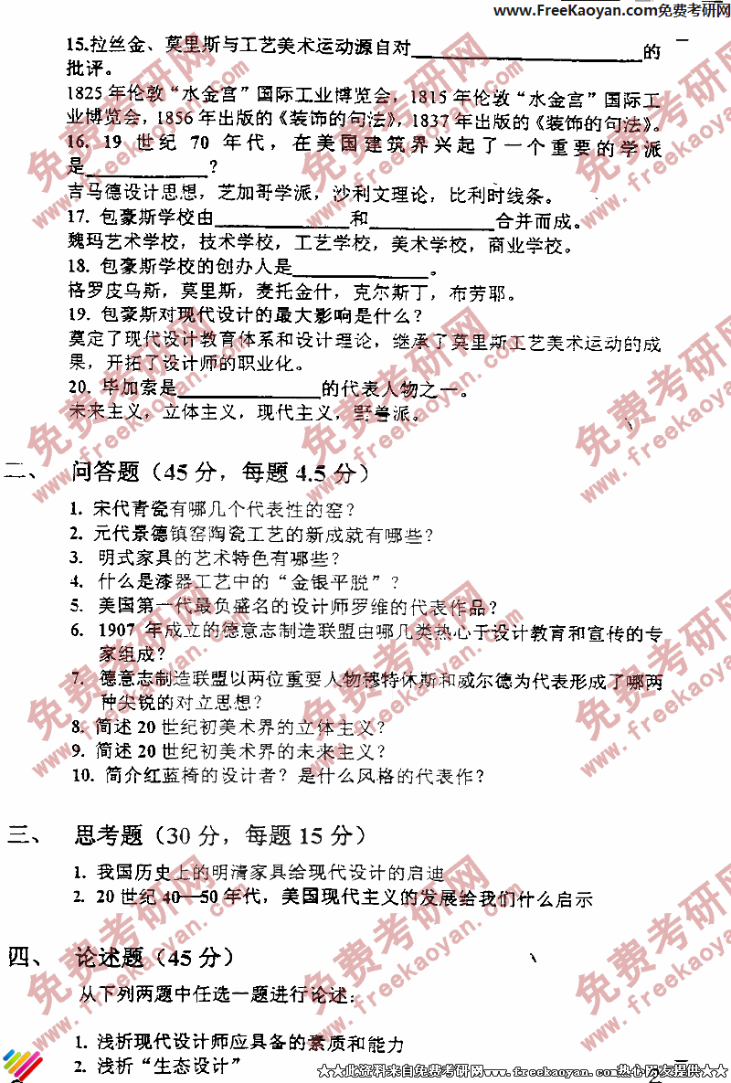 专业课考研经验 本站小编 FreeKaoyan 2018-01-22上海交通大学2003年考研真题-设计史论
