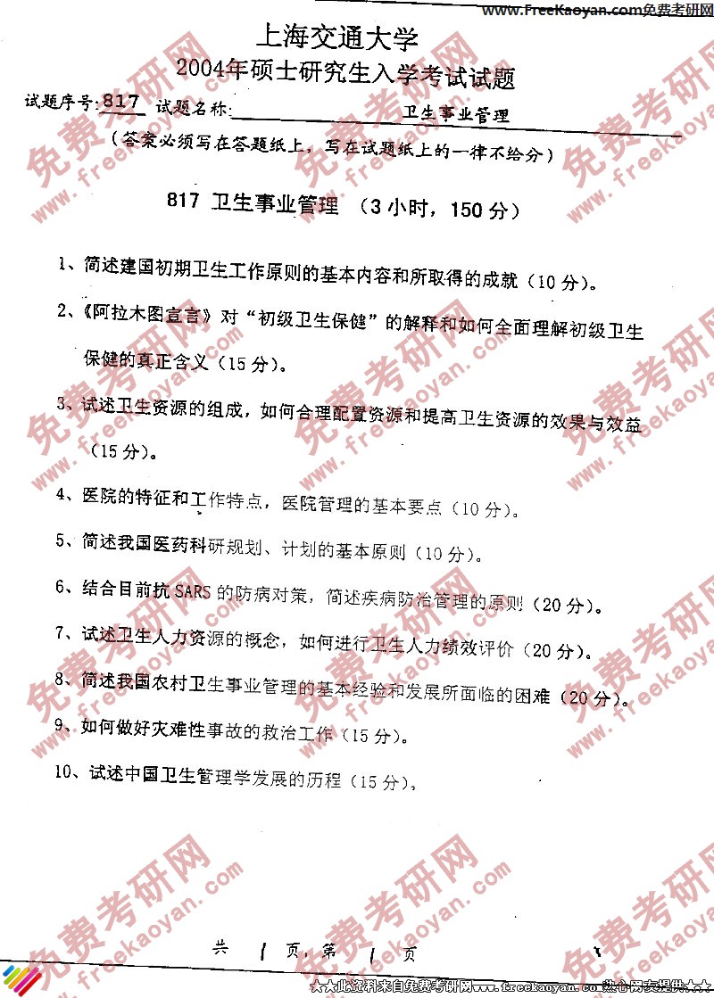 相关话题/考研真题 上海交通大学 管理 卫生事业
