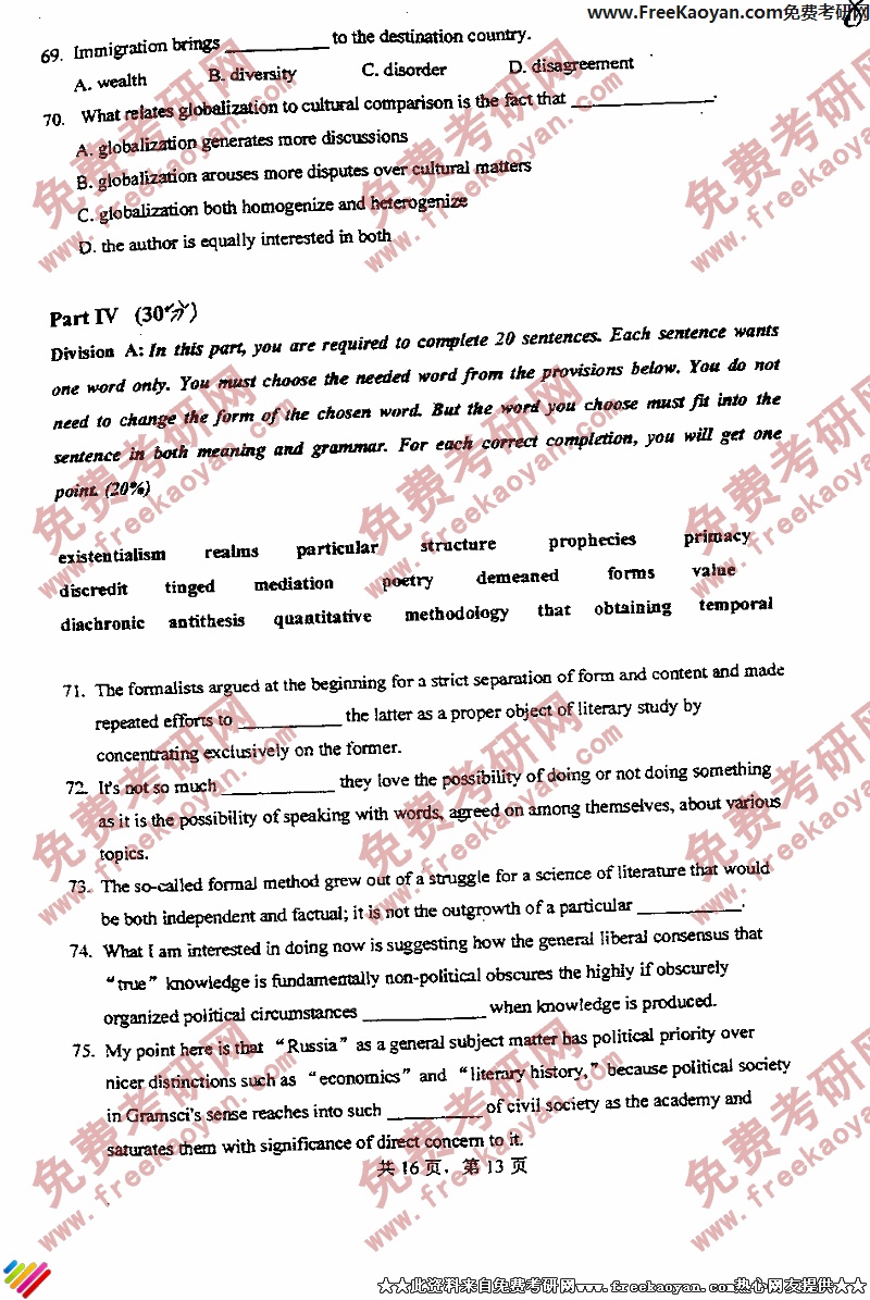 专业课考研经验 本站小编 FreeKaoyan 2018-01-22上海交通大学2003年考研真题-英语水平考试