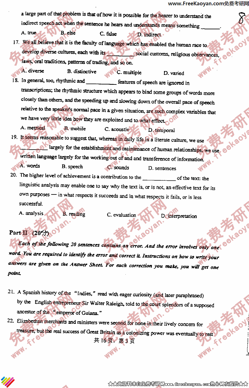 专业课考研经验 本站小编 FreeKaoyan 2018-01-22上海交通大学2003年考研真题-英语水平考试