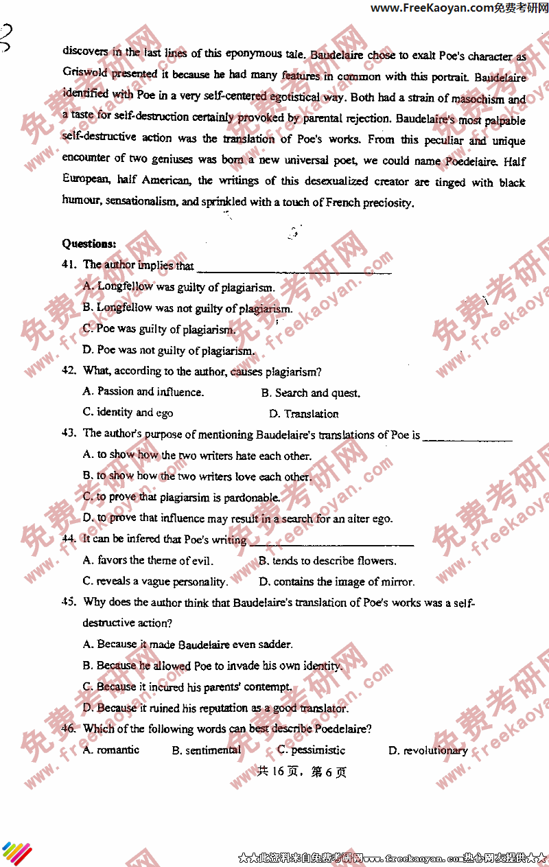 专业课考研经验 本站小编 FreeKaoyan 2018-01-22上海交通大学2003年考研真题-英语水平考试