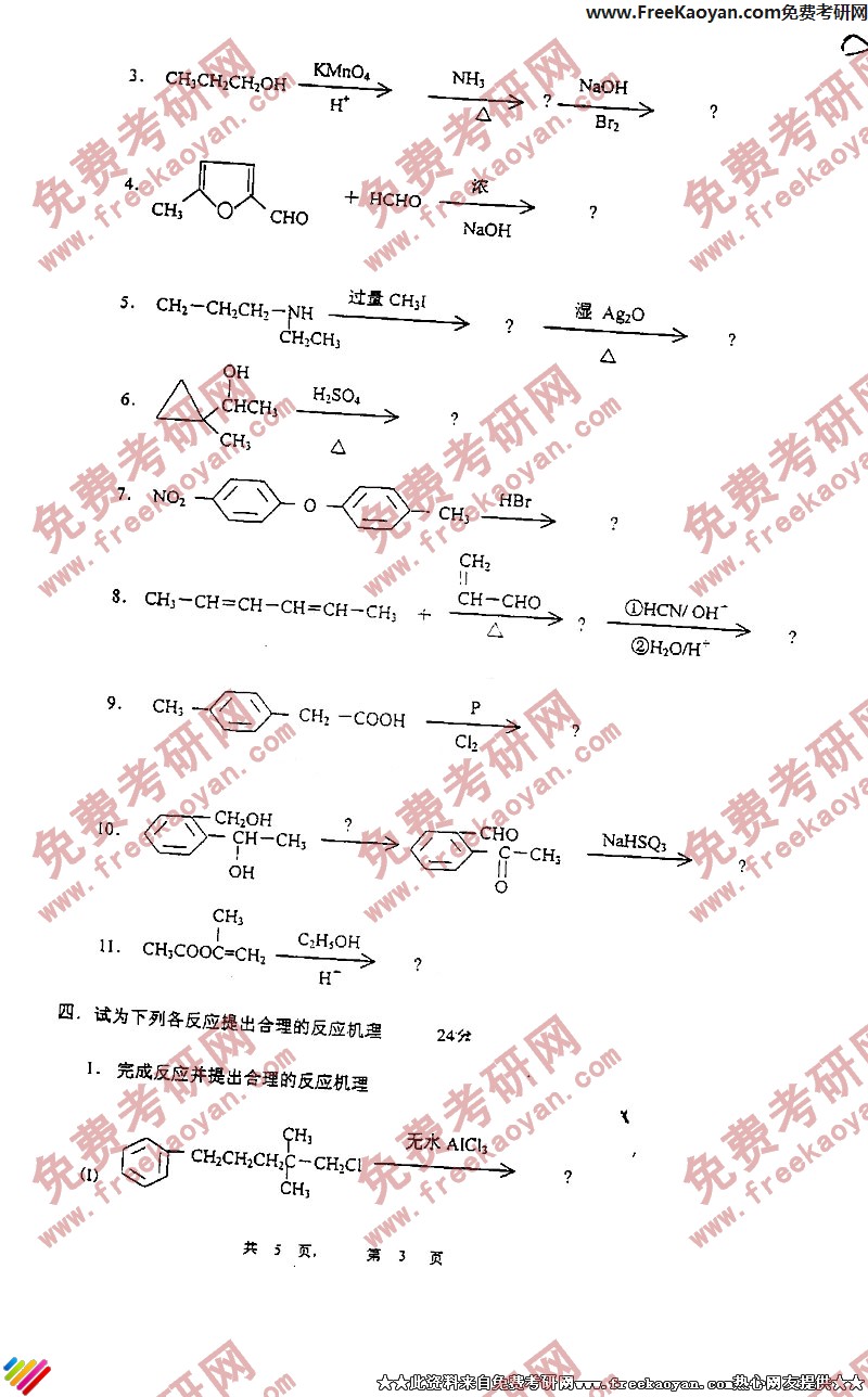 专业课考研经验 本站小编 FreeKaoyan 2018-01-22上海交通大学2004年考研真题-有机化学(1)