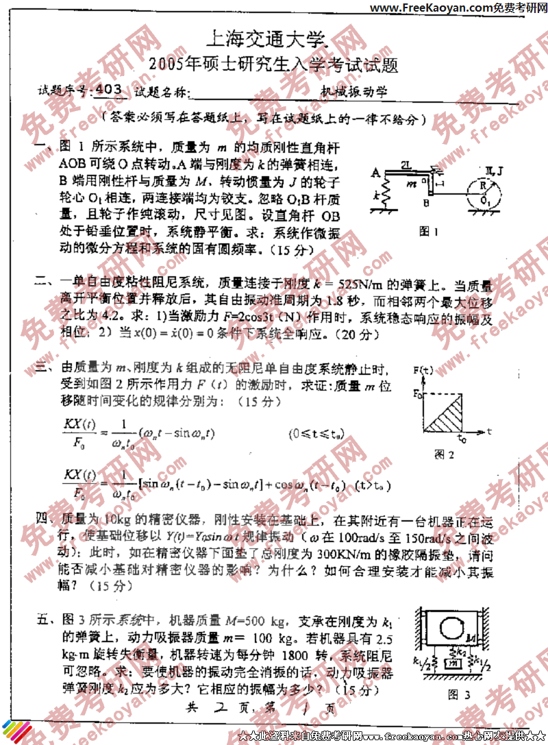 专业课考研经验 本站小编 FreeKaoyan 2018-01-22上海交通大学2004年考研真题-机械振动学