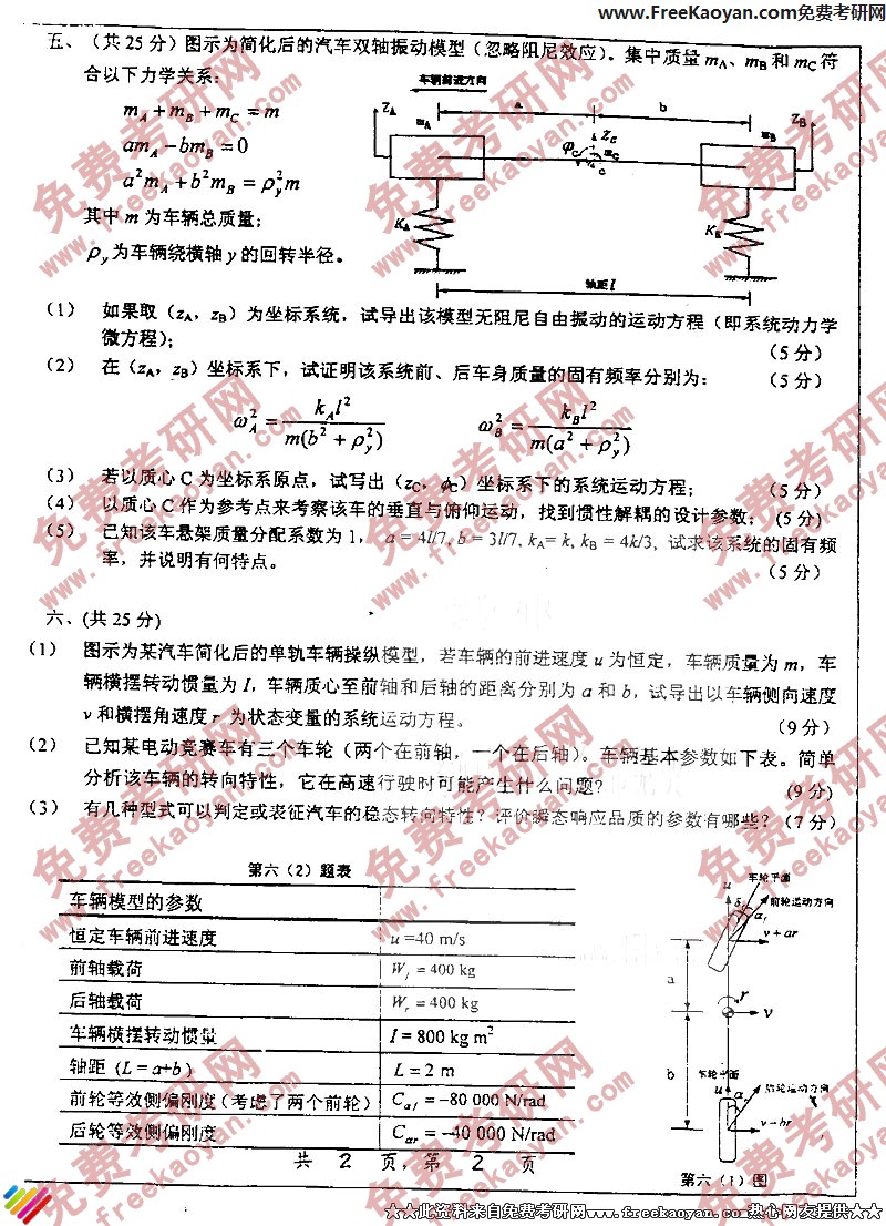 专业课考研经验 本站小编 FreeKaoyan 2018-01-22上海交通大学2004年考研真题-汽车理论