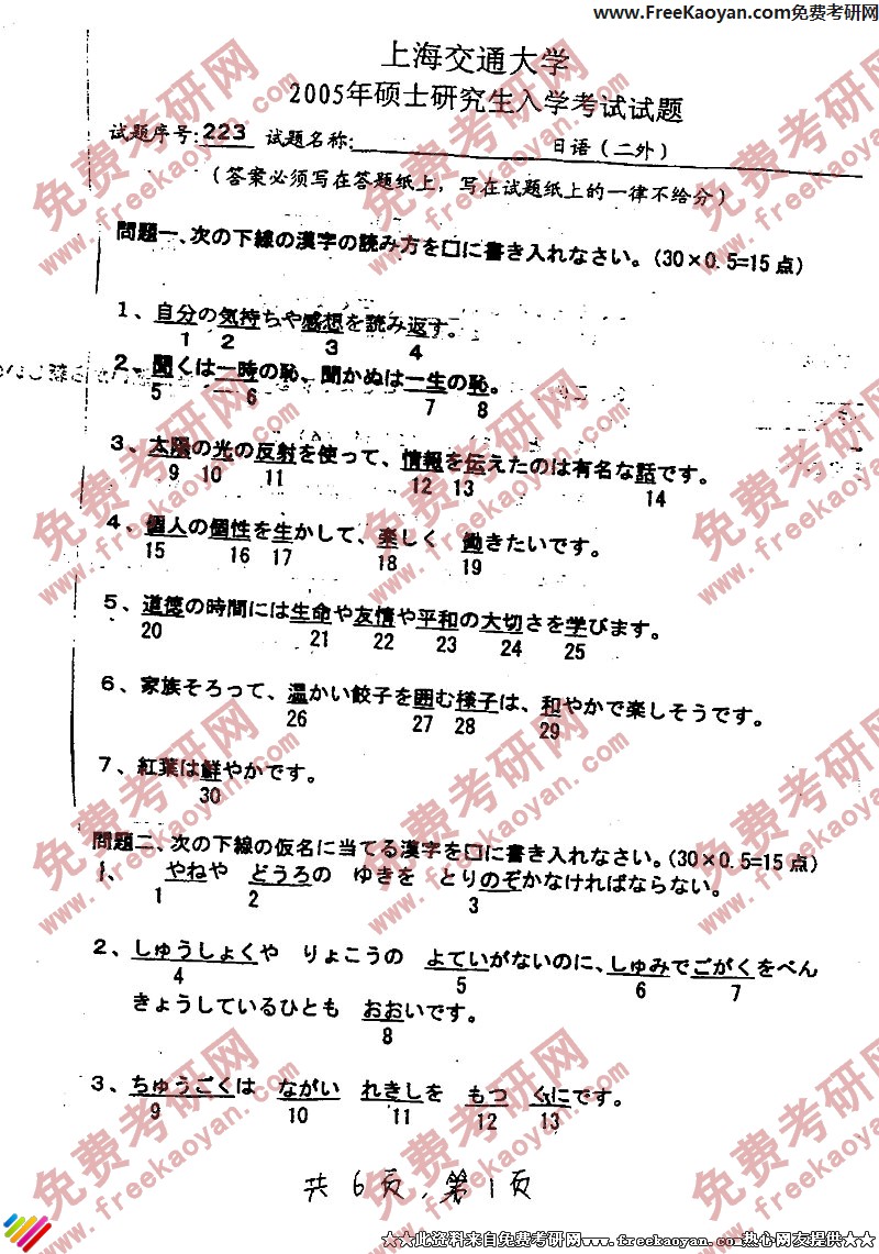 专业课考研经验 本站小编 FreeKaoyan 2018-01-22上海交通大学2005年考研真题-材料科学基础