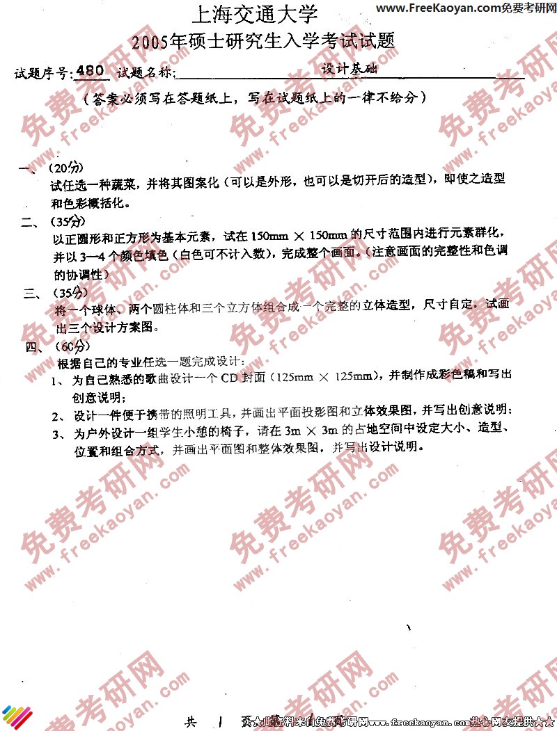 专业课考研经验 本站小编 FreeKaoyan 2018-01-22上海交通大学2004年考研真题-设计基础